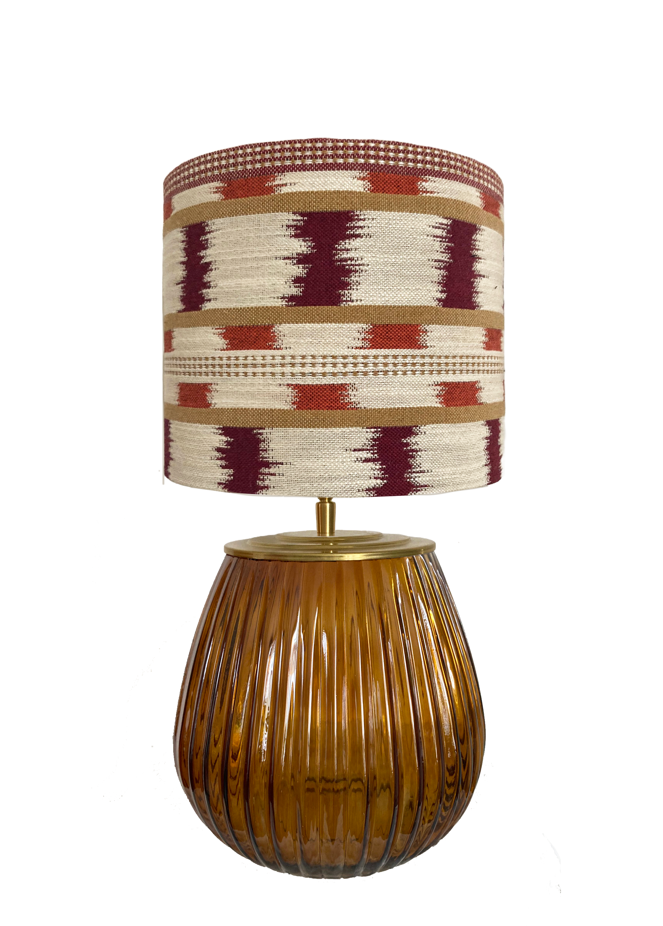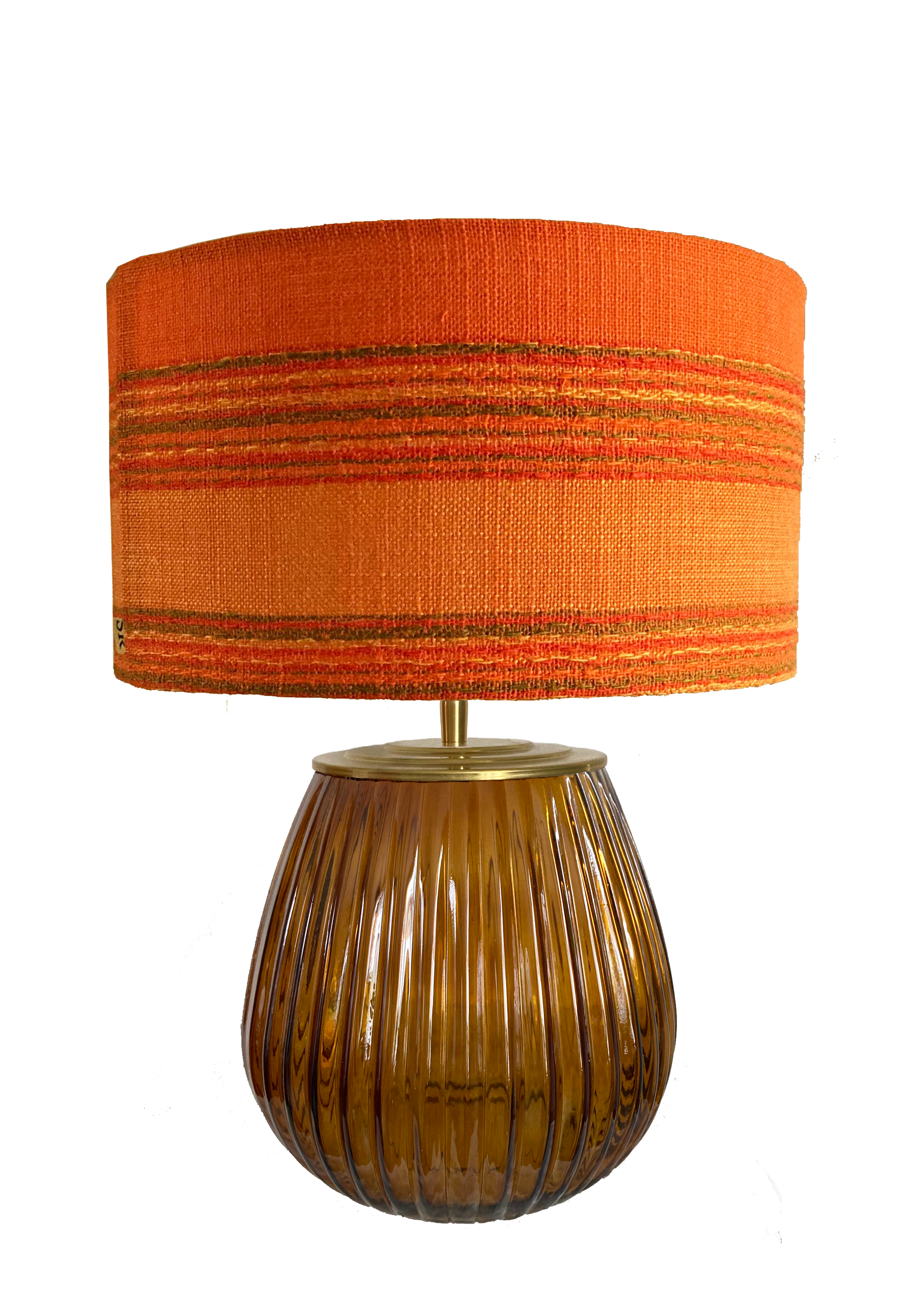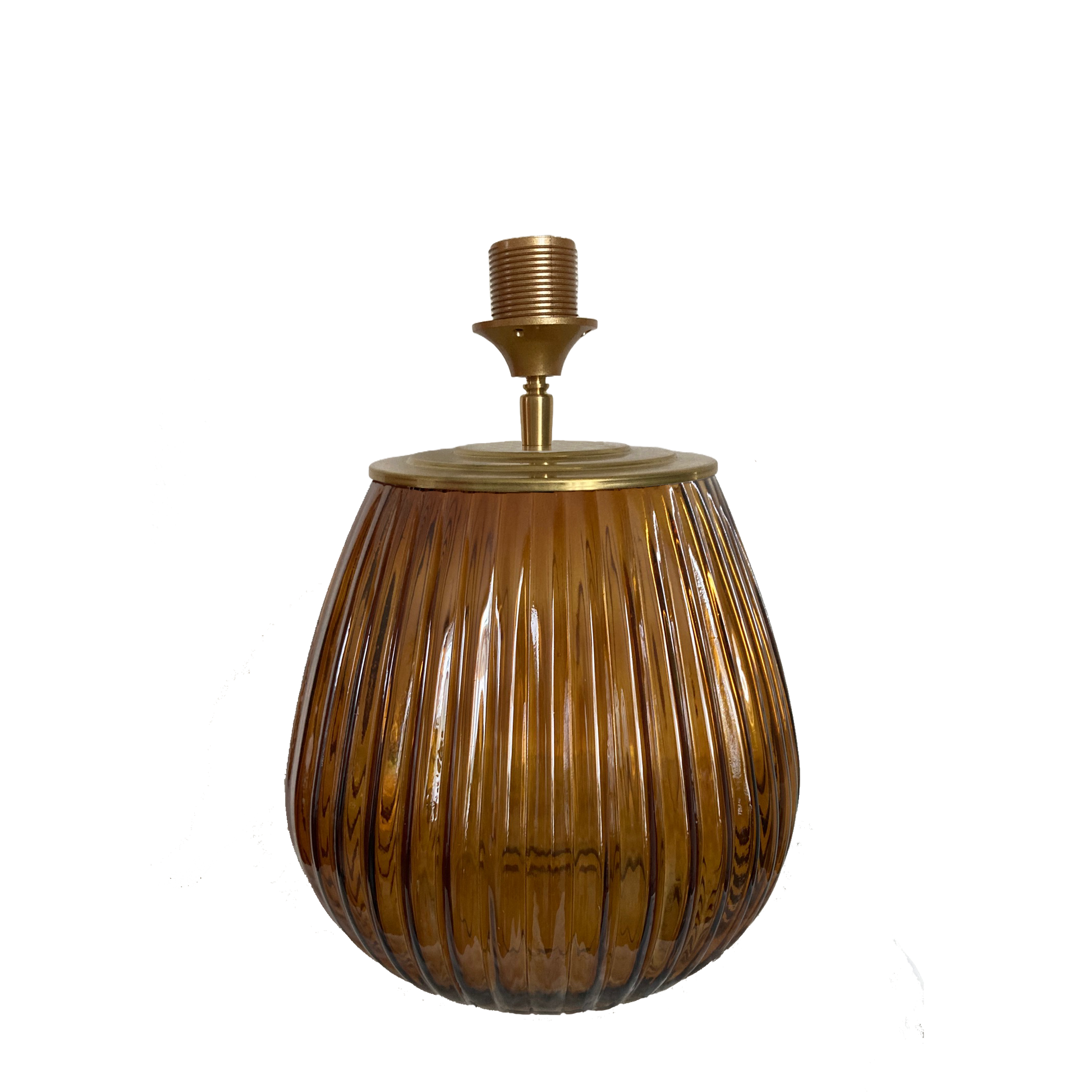 Glazen bolvaas met ribbelstructuur in een diepe amber-kleur.